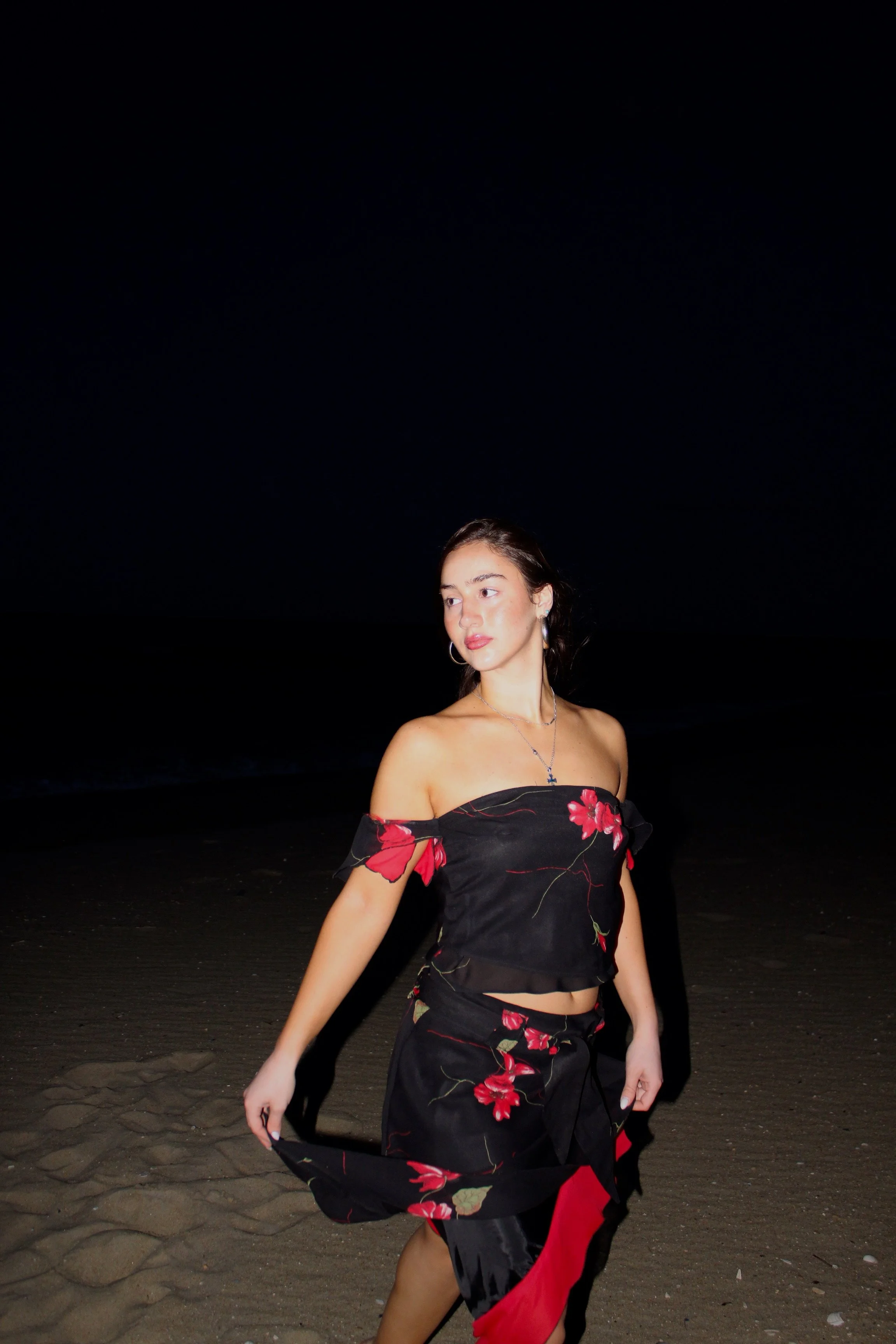 This self-directed project began with a thrifted two-piece set, which I completely deconstructed and redesigned into a new off-shoulder top and asymmetrical skirt.